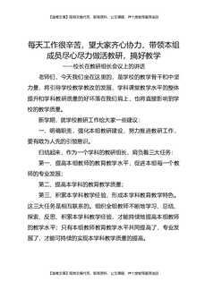 校长在教研组长会议上的讲话:每天工作很辛苦,望大家齐心协力,带领本组成员尽心尽力做活教研,搞好教学.docx