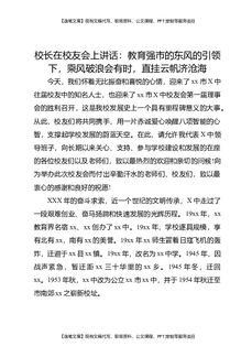 校长在校友会上讲话:教育强市的东风的引领下,乘风破浪会有时,直挂云帆济沧海.docx