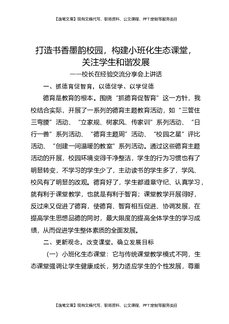 校长在经验交流分享会上讲话:打造书香墨韵校园,构建小班化生态课堂,关注学生和谐发展.docx