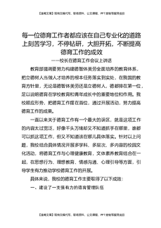 校长在德育工作会议上讲话:每一位德育工作者都应该在自己专业化的道路上刻苦学习,不停钻研,大胆开拓,不断提高德育工作的成效.docx