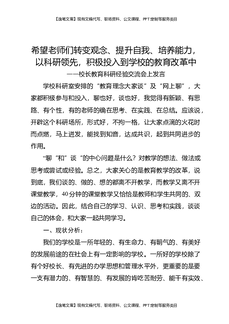 校长教育科研经验交流会上发言:希望老师们转变观念、提升自我、培养能力,以科研领先,积极投入到学校的教育改革中.docx