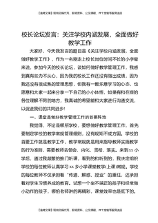 校长论坛发言:关注学校内涵发展,全面做好教学工作.docx