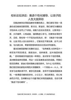 校长论坛讲话:推进个性化辅导,让孩子的人生大放异彩.docx