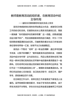副校长在教育教学经验交流会上发言:教师是教育活动的组织者,在教育活动中起主导作用.docx