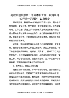 副校长述职报告:干好本职工作,自觉坚持知行统一的原则,以身作则.docx