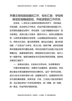 开展文明校园创建的工作,校长汇报:学校将继续发扬精诚团结、开拓进取的工作作风.docx