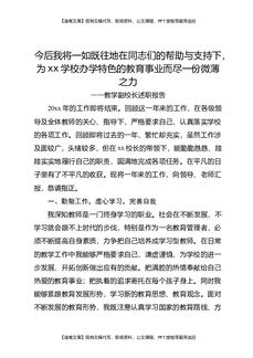 教学副校长述职报告:今后我将一如既往地在同志们的帮助与支持下,为XX学校办学特色的教育事业而尽一份微薄之力.docx