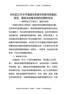 教研组长工作会议上,副校长讲话:你们的工作水平直接关系着学校教学质量的高低.直接决定着学校的发展和生命.docx