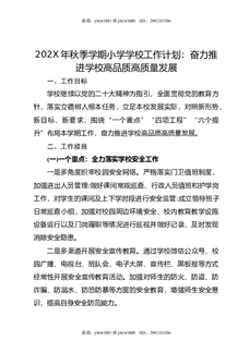 202X年秋季学期小学学校工作计划:奋力推进学校高品质高质量发展.docx