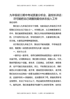 九年级初三期中考试质量分析会,副校长讲话:尽可能把自己调整到最佳状态投入工作.doc