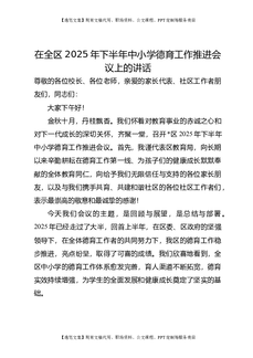 在全区2025年下半年中小学德育工作推进会议上的讲话.doc