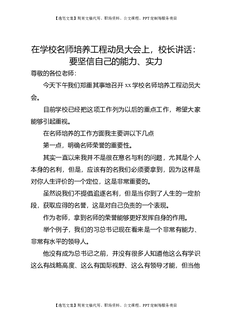 在学校名师培养工程动员大会上,校长讲话:要坚信自己的能力、实力.doc