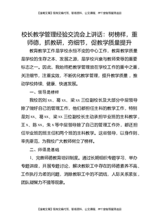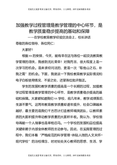 在学校教育教学经验交流会上,校长讲话:加强教学过程管理是教学管理的中心环节,是教学质量稳步提高的基础和保障.doc