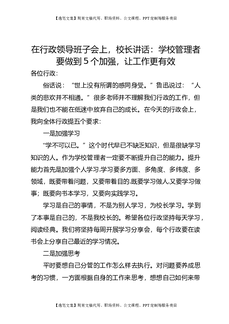在行政领导班子会上,校长讲话:学校管理者要做到5个加强,让工作更有效.doc