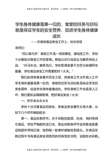 在食堂食品安全工作上,校长讲话:学生身体健康是第一位的,食堂的任务与目标就是保证学生的安全营养,促进学生身体健康成长.doc