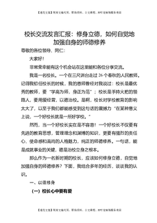 校长交流发言:汇报修身立德,如何自觉地加强自身的师德修养.doc