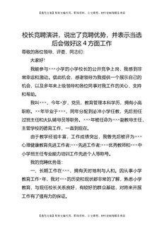 校长竞聘演讲,说出了竞聘优势,并表示当选后会做好这4方面工作.doc