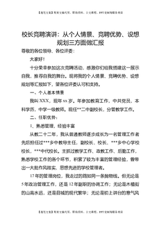 校长竞聘演讲:从个人情景、竞聘优势、设想规划三方面做汇报.doc