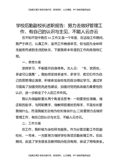 学校后勤副校长述职报告:努力去做好管理工作,有自己的认识与主见,不能人云亦云.docx