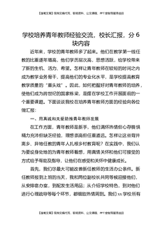 学校培养青年教师经验交流,校长汇报,分6块内容.docx