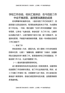 学校工作总结,校长汇报讲话:在今后的工作中会不懈进取,赢得更加满意的成绩.docx