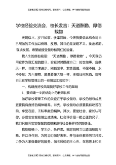 学校经验交流会,校长发言:天道酬勤,厚德载物.docx