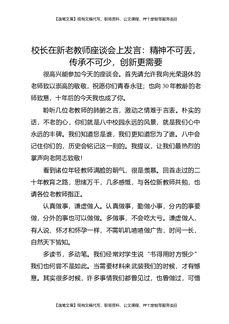 校长在新老教师座谈会上发言:精神不可丢,传承不可少,创新更需要.docx