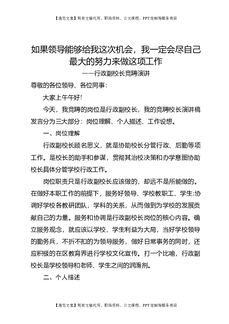 行政副校长竞聘演讲:如果领导能够给我这次机会,我一定会尽自己最大的努力来做这项工作.doc