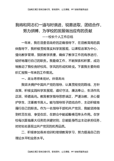 校长个人工作总结:我将和同志们一道与时俱进,锐意进取,团结合作,努力拼搏,为学校的发展做出应有的贡献.docx