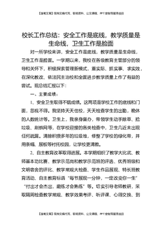 校长工作总结:安全工作是底线,教学质量是生命线,卫生工作是脸面.docx