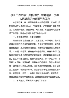 校长工作总结:开拓进取,锐意创新,为办人民满意的教育面努力工作.docx