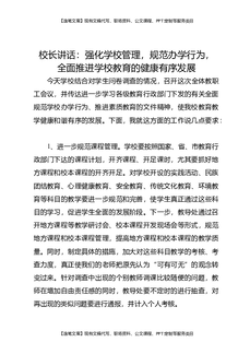校长讲话:强化学校管理,规范办学行为,全面推进学校教育的健康有序发展.docx