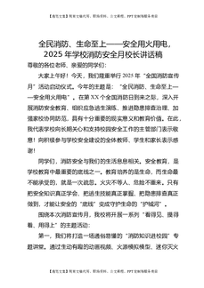 全民消防、生命至上——安全用火用电,2025年学校消防安全月校长讲话稿.doc