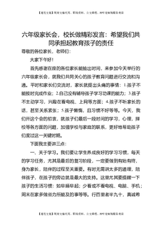 六年级家长会,校长做精彩发言:希望我们共同承担起教育孩子的责任.doc