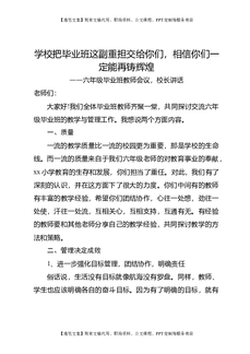 六年级毕业班教师会议,校长讲话:学校把毕业班这副重担交给你们,相信你们一定能再铸辉煌.doc