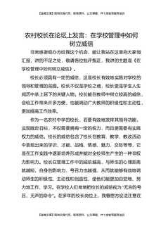 农村校长在论坛上发言:在学校管理中如何树立威信.docx