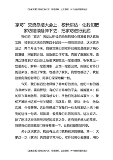 家访”交流总结大会上,校长讲话:让我们把家访继续延伸下去,把家访进行到底.docx