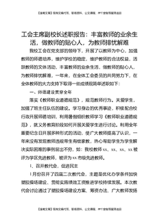工会主席副校长述职报告:丰富教师的业余生活,做教师的贴心人,为教师排忧解难.docx