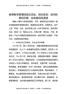 教育教学管理经验交流会,校长发言:欲问秋果何所累,自有春风雨潇潇.docx
