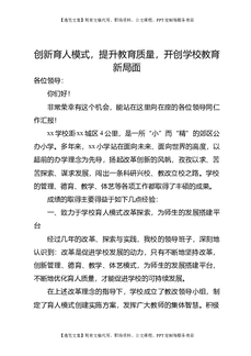 创新育人模式,提升教育质量,开创学校教育新局面.doc