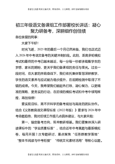 初三年级语文备课组工作部署校长讲话:凝心聚力研备考,深耕细作创佳绩.doc