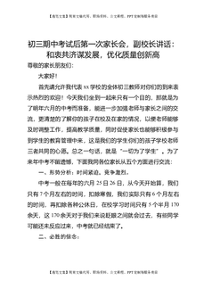 初三期中考试后第一次家长会,副校长讲话:和衷共济谋发展,优化质量创新高.doc