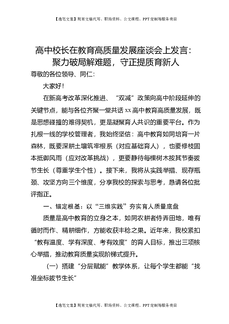 高中校长在教育高质量发展座谈会上发言:聚力破局解难题,守正提质育新人.docx