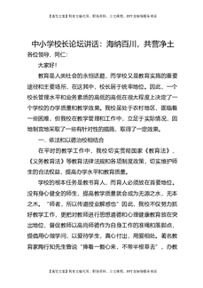 中小学校长论坛讲话:海纳百川,共营净土.doc