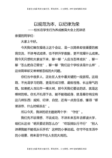 以规范为本,以纪律为荣——校长在学生行为养成教育大会上的讲话.doc
