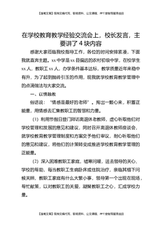 在学校教育教学经验交流会上,校长发言,主要讲了4块内容.docx