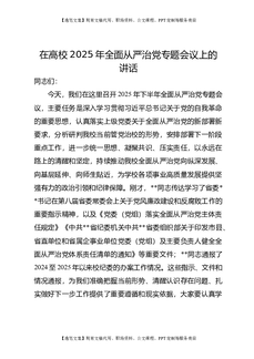 在高校2025年全面从严治党专题会议上的讲话.doc
