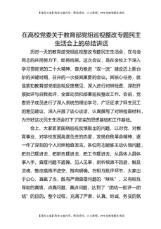 在高校党委关于教育部党组巡视整改专题民主生活会上的总结讲话.doc
