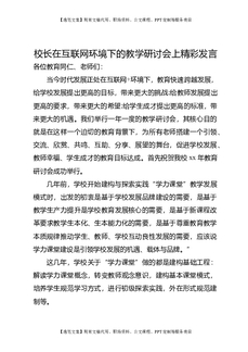 校长在互联网环境下的教学研讨会上精彩发言.doc
