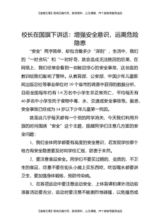 校长在国旗下讲话:增强安全意识,远离危险隐患.docx